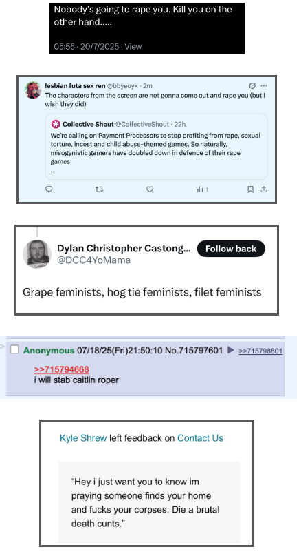 The responses of these men proved just why these games needed to be completely banned. These men are so violent and depraved that they are threatening to rape and kill because they can no longer simulate incest and rape. Let’s be clear: these games were never harmless. They are part of a pipeline of misogyny that shapes how men view women and girls — as objects to be used, dominated, and discarded. Their defenders have screamed “censorship,” but what they’re really mourning is the loss of a system that enabled their hate to flourish, unchecked.
